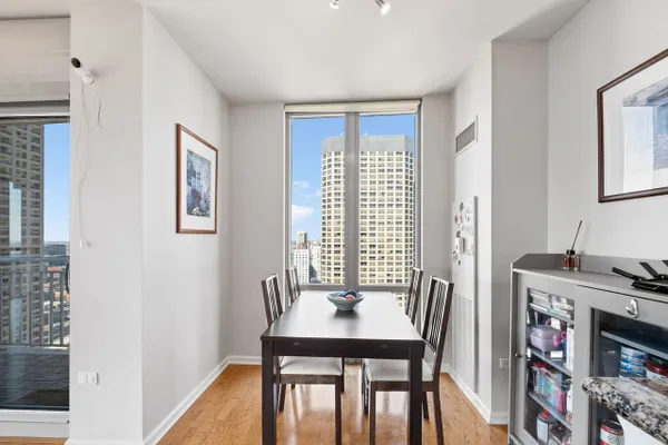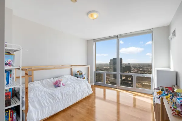 Welcome to this stunning 2-bedroom, 2-bath end-unit condo in the sought-after Park Alexandria in the heart of the West Loop. Perfectly positioned on a high floor with open, unobstructed city views. The living room is flooded with natural light thanks to dramatic floor-to-ceiling windows and has hardwood floors. The kitchen features granite countertops, new stainless steel appliances (2025), a breakfast bar, and ample table space-ideal for everyday living and entertaining. The primary suite offers a walk-in closet and a private ensuite bath complete with dual vanity, whirlpool soaking tub, and separate walk-in shower. The second bedroom includes a generous closet and easy access to the full hall bath. Enjoy the convenience of in-unit laundry with newer washer and dryer and step out onto your private balcony to take in the breathtaking city views. One deeded garage parking space is included in the price and a second deeded garage space is available for an additional $25,000. Both spaces are conveniently located on the first floor near the elevator. Additional storage locker also included in the price. This full-amenity building offers 24-hour door staff, fitness center, party room, sundeck, and dog run. Incredible location close to restaurants, shopping, public transportation, and everything the West Loop has to offer!
