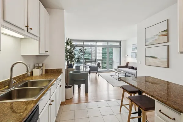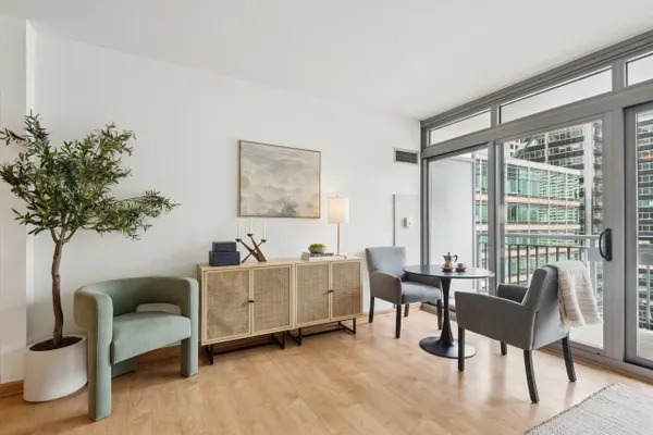 Beautiful junior 1-bedroom with an excellent layout and stunning city views! This bright unit features fresh new paint throughout, brand new stainless steel appliances, granite countertops, 42" maple cabinets, hardwood floors, in-unit washer/dryer, and floor-to-ceiling windows. Flexible layout allows for easy separation of the bedroom area for added privacy or an open, lofted feel. Enjoy a large private balcony with impressive skyline views. Park Alexandria is a full-amenity building offering 24-hour door staff, 9,000 sq ft outdoor terrace with dog run, fitness center, party/meeting room, and two furnished guest suites. One parking space included.